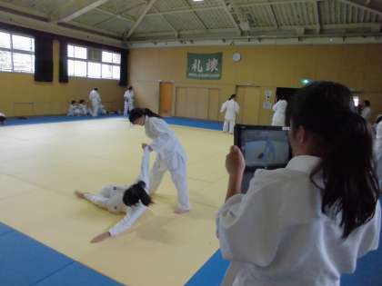 柔道の授業も本格的になってきました、いよいよ投げ技の体落としです。上手にそして安全に投げれるようになるため、タブレットで動画を撮りました。撮った動画はみんなで共有し、タブレットを家に持ち帰ってそれぞれが見返します。上手な人の動画を見ながら、みんなで高めていきましょう。