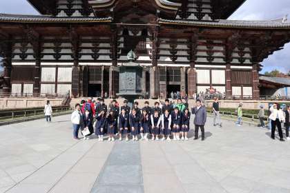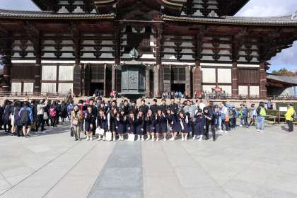 午後はみんなで東大寺に行きました。柱の穴をくぐって幸せになれるかな?