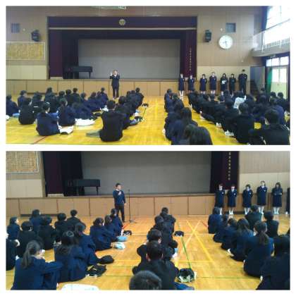 生活指導担当の堺先生からは、「天候や気温不順の折り、体温調節とともに正しい服装をしましょう!」でした。