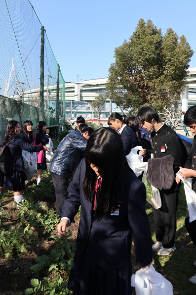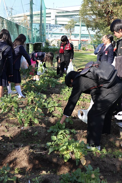12月21日(金)終学活の後、技術科で栽培していた大根の収穫を行いました。