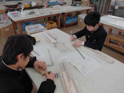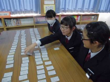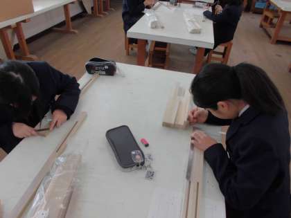 3時間目の1年生の授業の様子です。技術で椅子作りと国語で百人一首に取り組んでいました。
