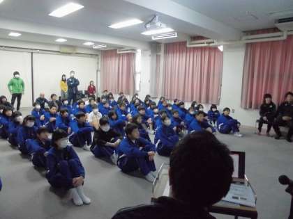 1/21の2・3限目、トップアスリート夢授業が開かれました。今年度はワールドカップで脚光を浴びているラグビーです。NTTドコモ レッドハリケーンズのみなさんが築港中学校に来てくださいました。2時間目は選手の方の経歴を振り返りながら、夢を持つことの大切さについてお話を聞きました。