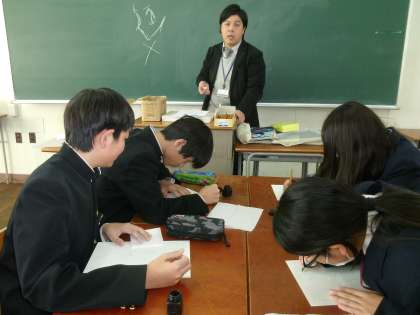 好文学園高等学校・山口先生(漫画・アニメ)の授業です。はじめに現在のアニメ、漫画業界についてのお話や業界に就職するにはどのようなことをしておけばよいのかというお話とともに実際に放送されたアニメの設定資料という貴重なものを見せていただきました。その後は、漫画家が使用しているGペンという道具で先生の描かれた漫画にペン入れをする作業をしました。作業中にも先生からは絵を描く際にはどのようなことを意識すればよいか、普段の絵を描く練習の方法などのお話をしていただきました。