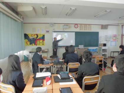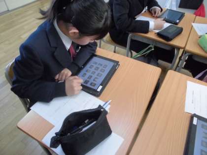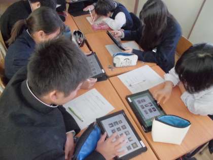 2年生の美術でランプシェード作りが始まりました。スクリーンやタブレットで、過去の作品やプロの方の作品を鑑賞し、自分の作品の構想を考えました。完成が楽しみです。