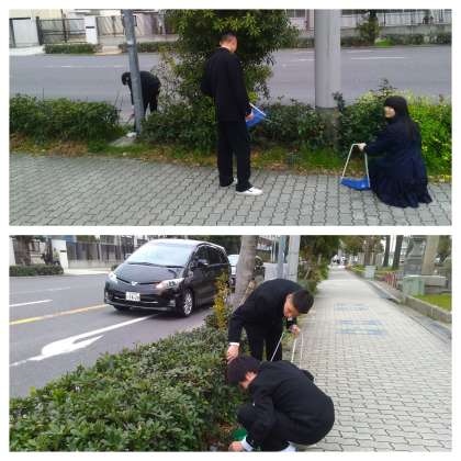3月6日(水)、朝チームは、引き続き、学校横の公園前道路沿いのゴミ取りを行いました。今朝もたくさんのゴミや吸殻などを取り、とてもキレイになりました。