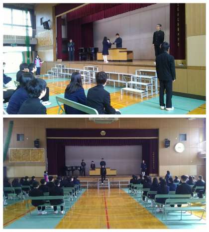 3月8日(木)、3年生は今日から卒業式練習です。さすが40期生!粛々と練習が進みます。