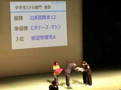中学校ミドル部門の「ビギナーズマシン」チームが、14チーム中2位の成績で見事「準優勝」に輝きました。健闘を讃えます。