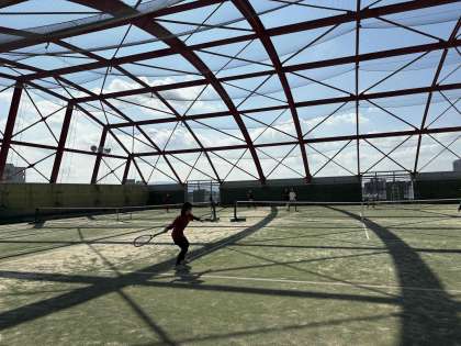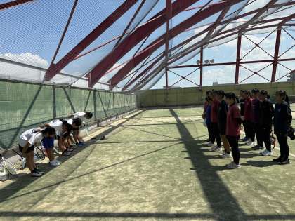 生徒たちは高校生とラリーをして上手な姿を間近で見ることができました。