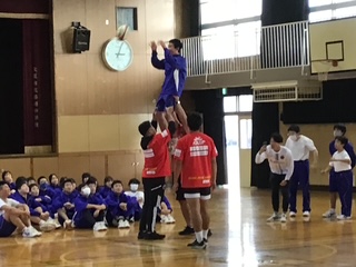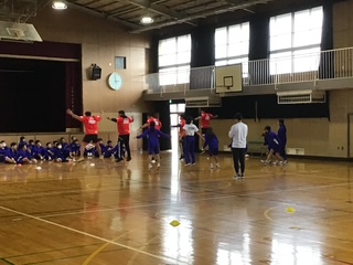 ラグビーのことをわかりやすく話してくださり、子どもたちは楽しくからだを動かしました。