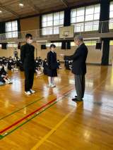修了式の後で、昨日の百人一首大会の表彰がありました。かるた名人とかるたクィーンは...