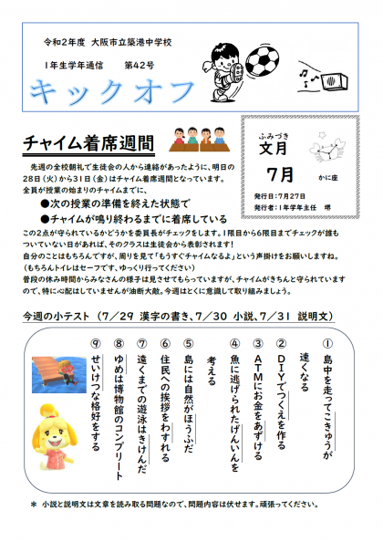 明日からはとくにチャイムに反応しましょう。 ここをクリック⇒1年生 学年通信 ...