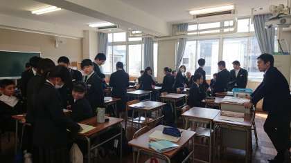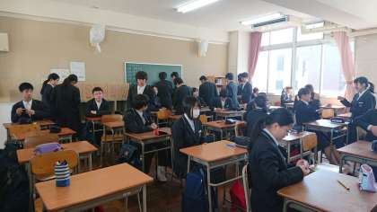 4月9日(火)2年生は、1時間目の学級写真撮影に続いて2時間目に各学級で自己紹介カード作成などのオリエンテーションを行いました。新学期最初の学級活動でしたが、どのクラスもリラックスした雰囲気で取り組んでいました。