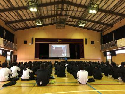 2年生は、5時間目に学年集会で校外学習の説明がありました。先生方が春休みに京都御所や二条城、平安神宮、下賀茂神社、円山公園を下見した写真を紹介しながら、当日の班活動についての説明がありました。