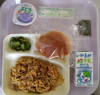 パン(1/2) 牛乳 焼きそば きゅうりのしょうがづけ ぶどうゼリー