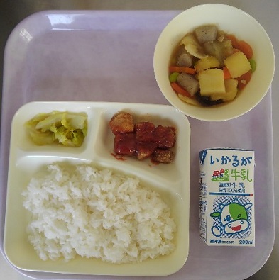 ごはん 牛乳 まぐろのオーロラ煮 じゃがいもと野菜の含め煮 キャベツの梅風味