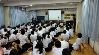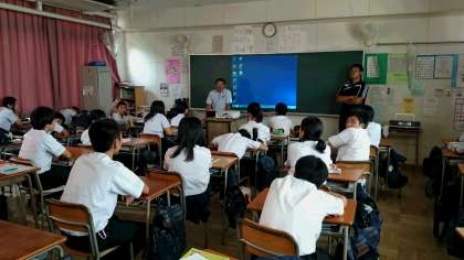 本日の6時間目に、3人のドクターに来校していただき「エイズについて」というテーマで出前授業をしていただきました。3年生5クラスが3グループに別れてパワーポイントを使った授業を受けて学習しました。