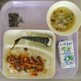 ごはん (減量) 牛乳 牛肉のちらしずし すまし汁 ちまき