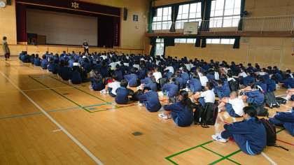 予定通り、帰って来て帰校式です。