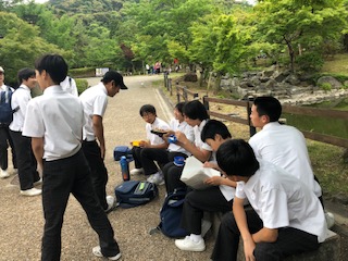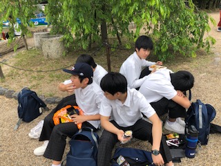 E班、F班は円山公園にて昼食を楽しんでいます。