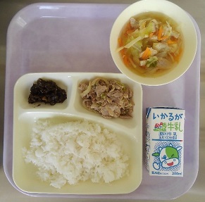 ごはん 牛乳 豚肉のごまみそ焼き すまし汁 のりのつくだ煮