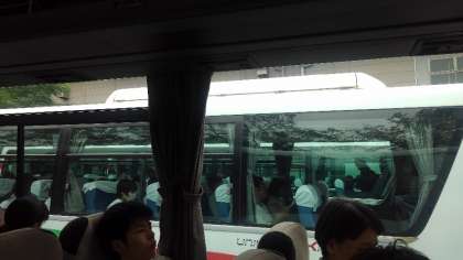 鹿児島中央駅に着き、バスに乗って移動します。
