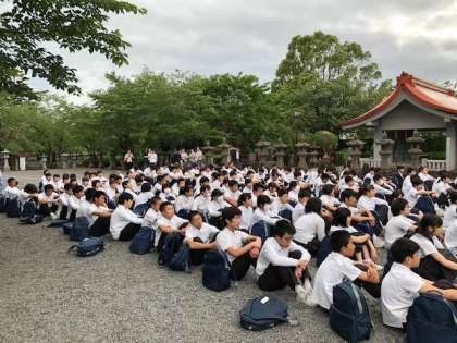 平和への誓いのことばの後、学年みんなで折った千羽鶴を奉納しました。