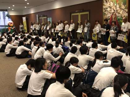 民泊の入村式が終わり、各家庭に生徒が向かいました。