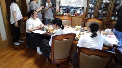 二枚目の写真は、昼食にパンを作って食べるところです。