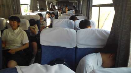 民泊を終えて、出水から鹿児島中央に向けてバスに乗っています。