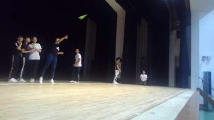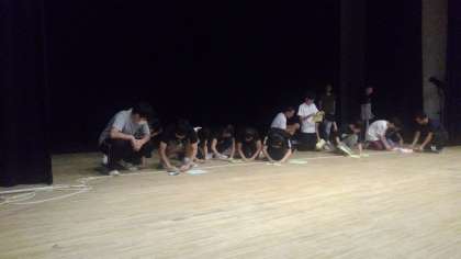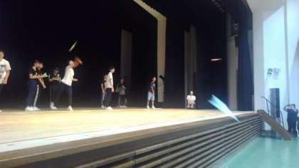 紙飛行機飛ばしをしています。