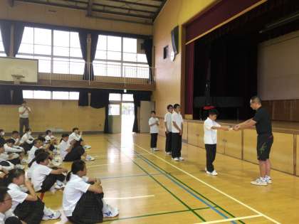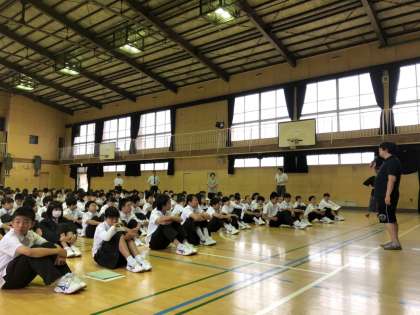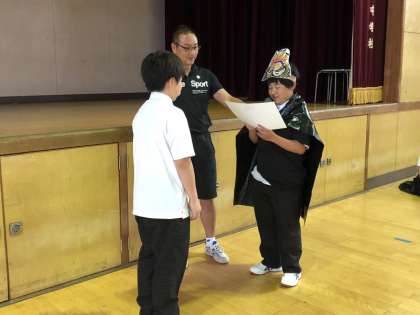 本日の学年集会では、一泊移住でのレクリエーション大会の表彰を行いました。