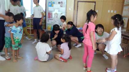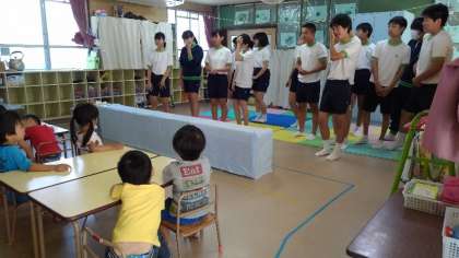 家庭科の授業にて保育園に行かせていただき、園児とふれあう学習をしています。