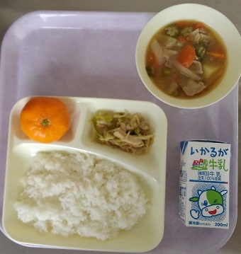 ごはん 牛乳 ピリ辛野菜いため オクラとん汁 みかん(冷)