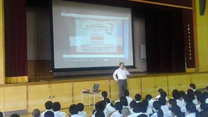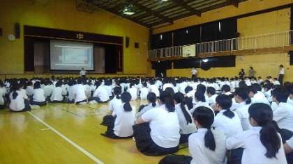 本日(7月12日)1時間目の総合で、全校生徒を対象に非行防止教室を行いました。