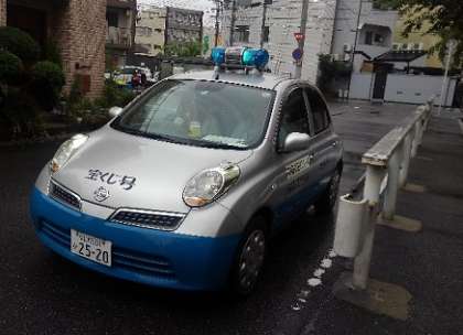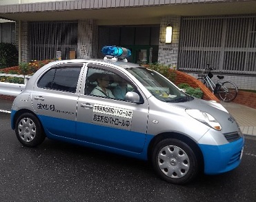 あいにくの雨でしたが、青パトに校長、生徒指導主事、PTA会長が