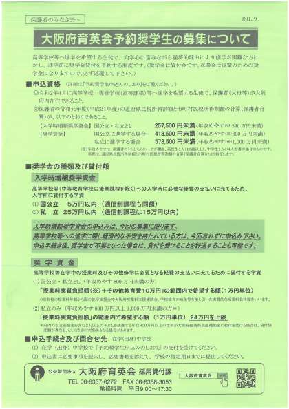 2.高等学校等への進学に際し経済的な不安を持たれている方は、今回忘れずに申込み下さい