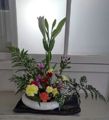 今日、茶華道部が校長室前にお花を飾ってくれました。