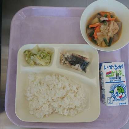 ごはん 牛乳 さごしの塩焼き じゃがいもと一口がんもの煮もの キャベツのおひたし