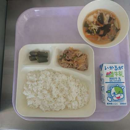 ごはん 牛乳 豚肉の甘辛焼き みそ汁 オクラのおかかいため