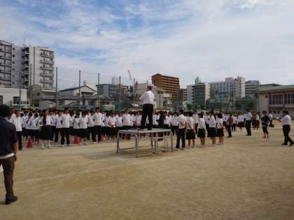 校長先生からは、体育大会という一つの行事が終わりましたが、皆さんは文化祭に向けて、すでに取り組みが始まっています。これからも学級・学年で協力して取り組んください。