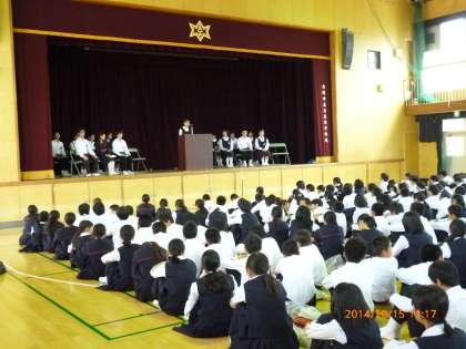 体育館では、立候補者による、立会演説が行われ、各教室で投票しました。