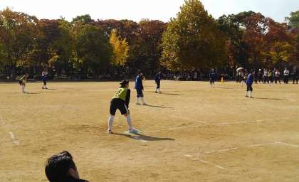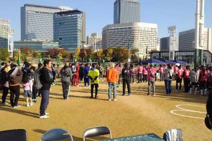本日(11月17日)大阪城太陽の広場において、大阪市青少年指導員連絡協議会主宰のキックベースボール決勝大会が行われました。