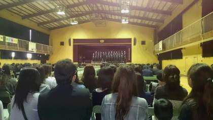 文化祭出場をめざして、1年生の合唱コンクールが午後行われました。どのクラスも素敵な歌声を響かせ、投票結果は、2組が金賞で1組が銀賞でした。たくさんの保護者のみなさんにも楽しんでいただきました。