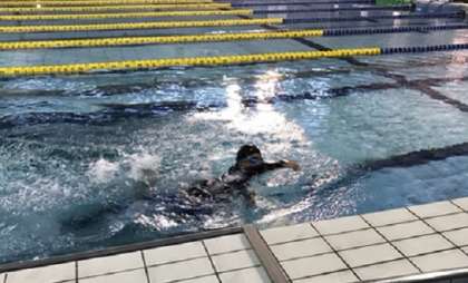 写真は、午後からの水泳プログラムと閉会式の様子です。