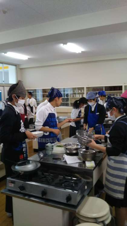 本日、3・4限に2年1組が調理実習を行いました。一生懸命取り組んだこともあり自分で作ったりこともあり、すごく美味しいと感じる生徒が多くいました。