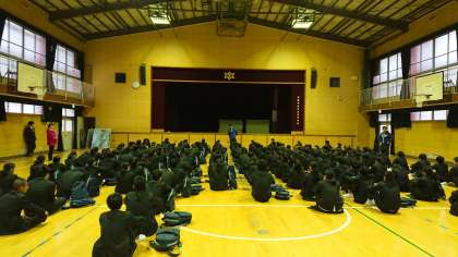本日、三学期最初の学年集会を行いました。三学期の過ごし方の大切さ、自分で考えて行動できるようになること、健康面の話など色々な話をしました。