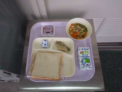 パン 牛乳 あじのレモンマリネ てぼ豆のスープ煮 個形チーズ いちごジャム
