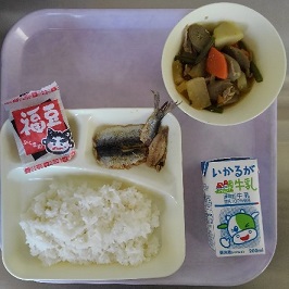 ごはん 牛乳 いわしのしょうがじょうゆかけ 含め煮 いり大豆
