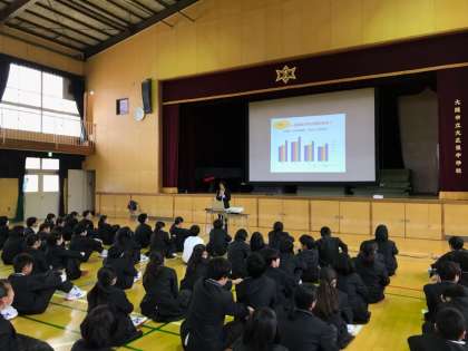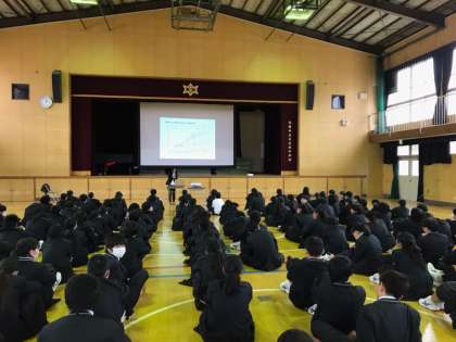 ハローワーク大阪西から講師をお招きして、5.6限に体育館で行いました。