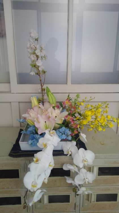 式場の片付けも、教職員で行いましたが、壇上の花の一部を校長室前に飾っていただきました。